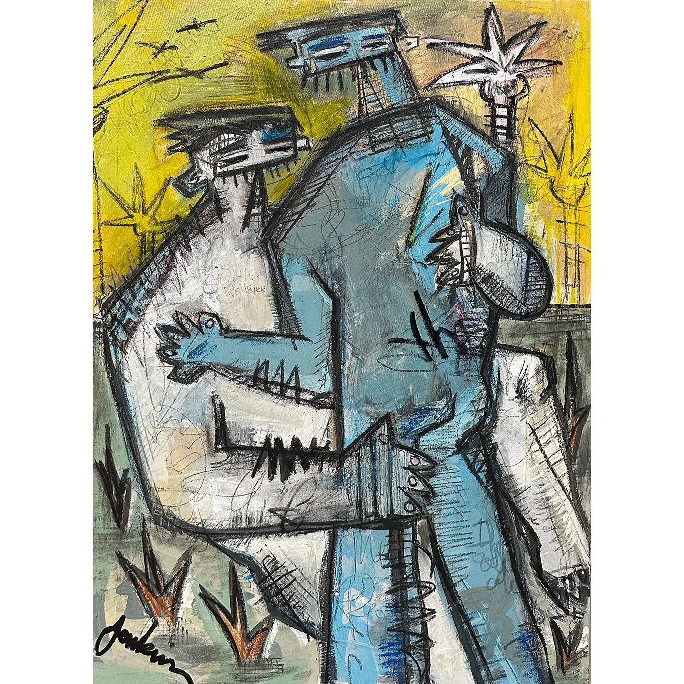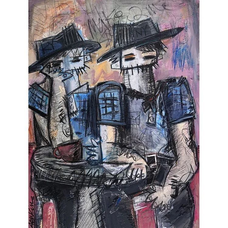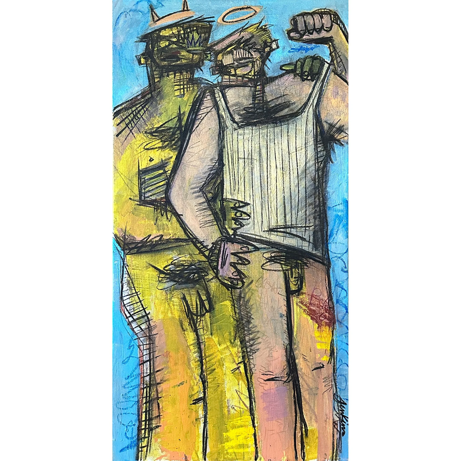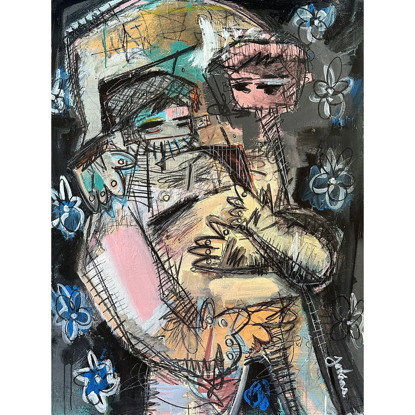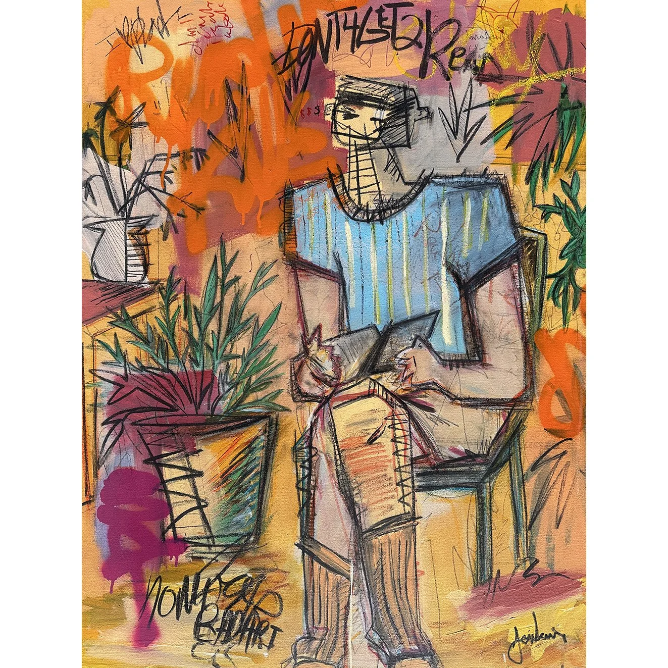 “The human figure remains central in my work, often fragmented and distorted, reflecting both personal and collective tensions of self-perception, queerness, and cultural displacement, and constructing layered narratives that explore identity, masculinity, and belonging.“