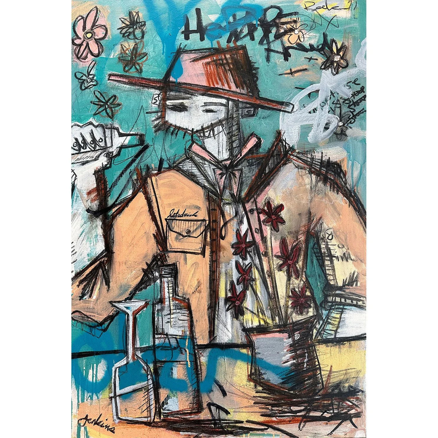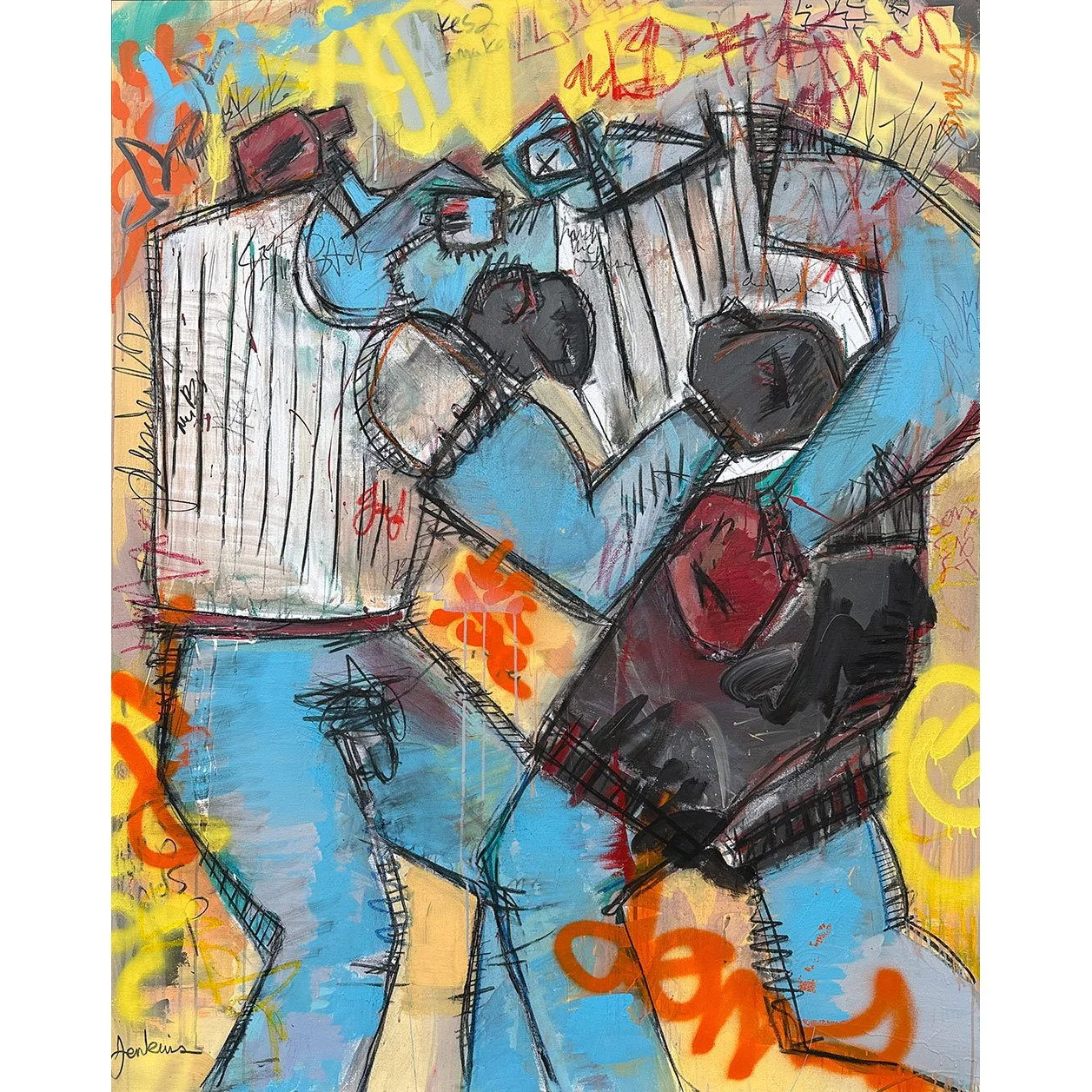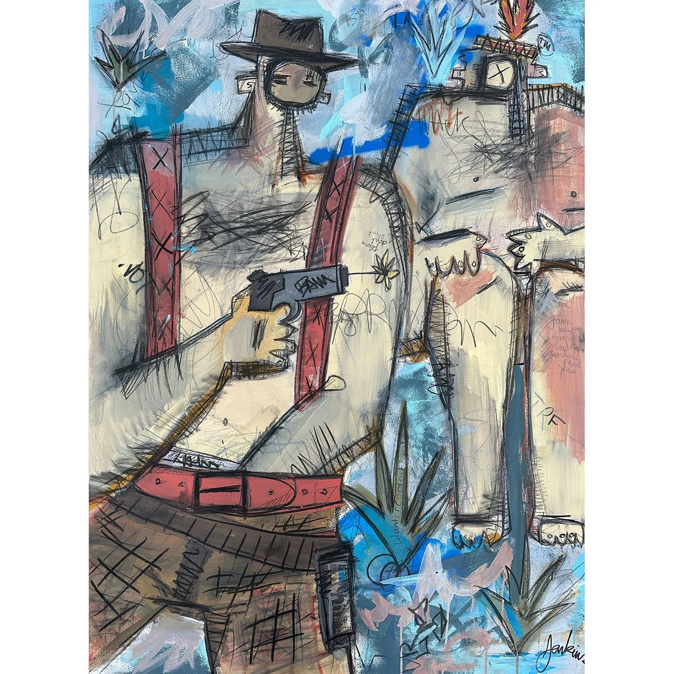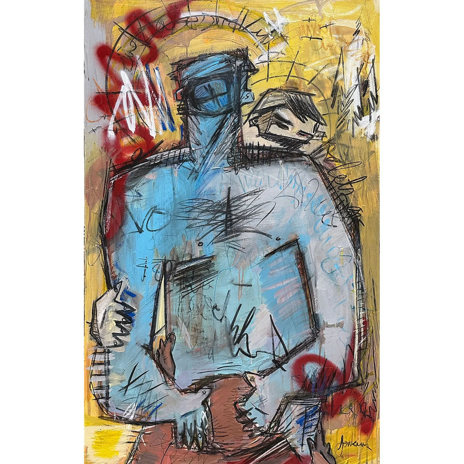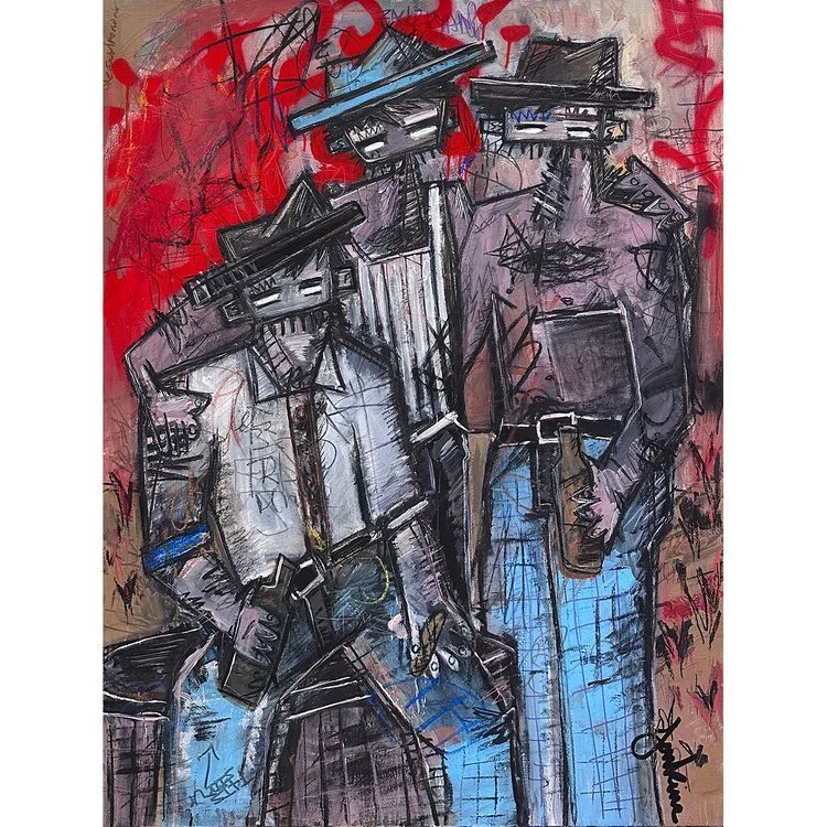 “The human figure remains central in my work, often fragmented and distorted, reflecting both personal and collective tensions of self-perception, queerness, and cultural displacement, and constructing layered narratives that explore identity, masculinity, and belonging.“