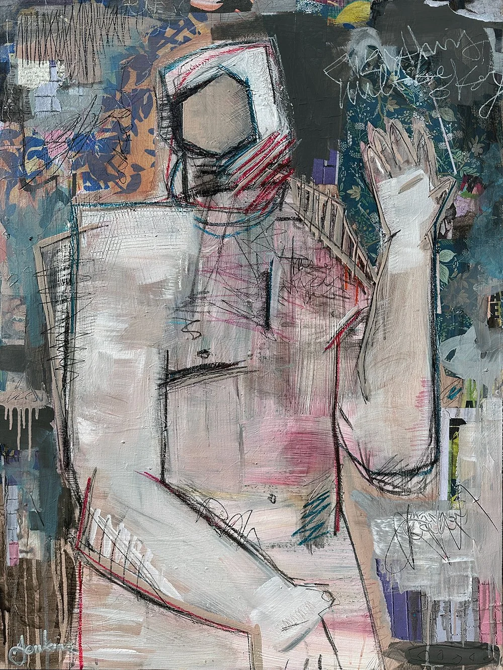 Acrylic, collage, and mixed media on canvas