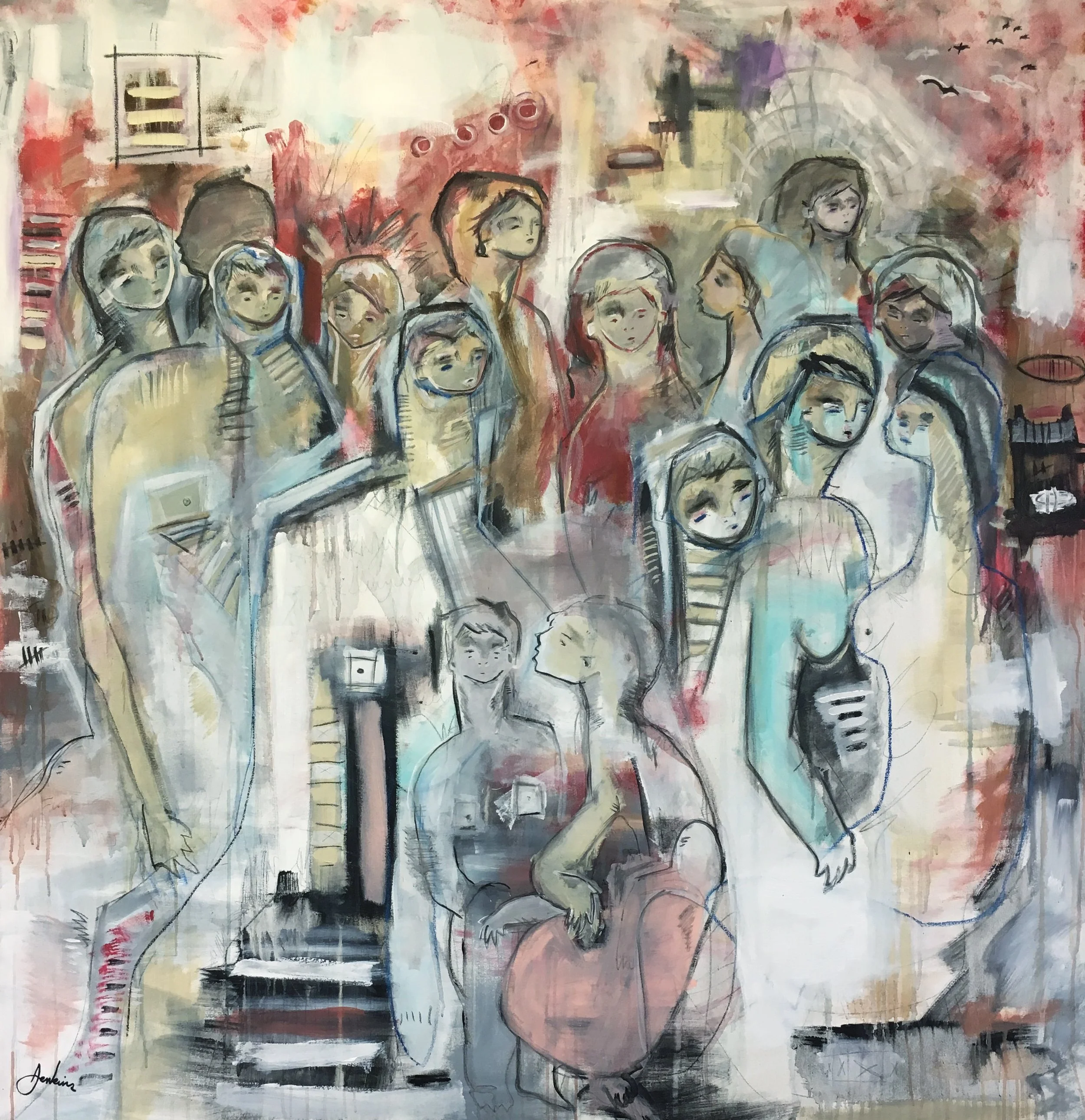 Acrylic and mixed media on gallery wrapped canvas